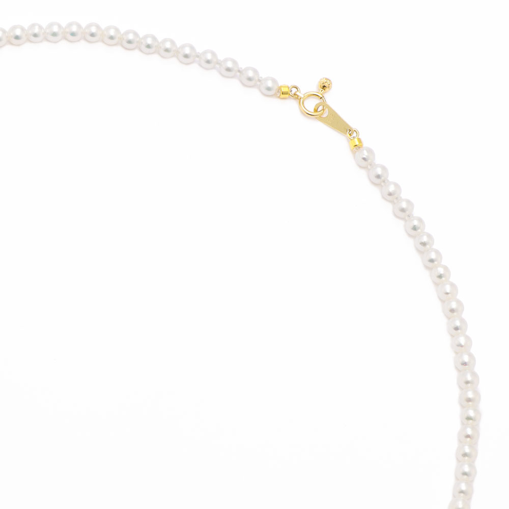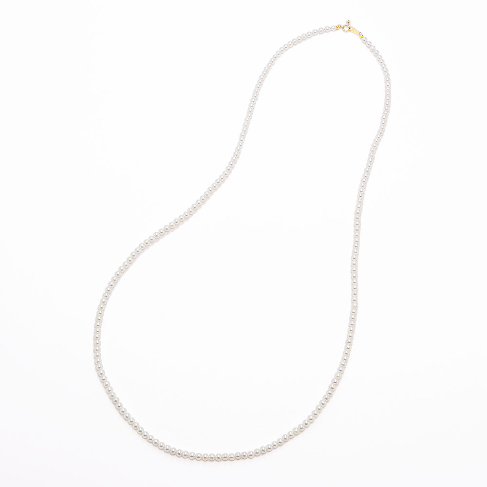「パールの歴史が変わった」と言われるほどに、近年、注目を集めている淡水パールの高品質化。元々は無核の淡水パールが、技術改良により有核に成功したことで、真円に近く、色・テリ共にアコヤ真珠に匹敵するような美しさが実現。中でも今回は、憧れのベビーパールをリーズナブルに、たっぷりと長さ違いで揃えました。留め具はK18を使用。45cm・60cmはスライドアジャスター付きで長さ調節も可能です。