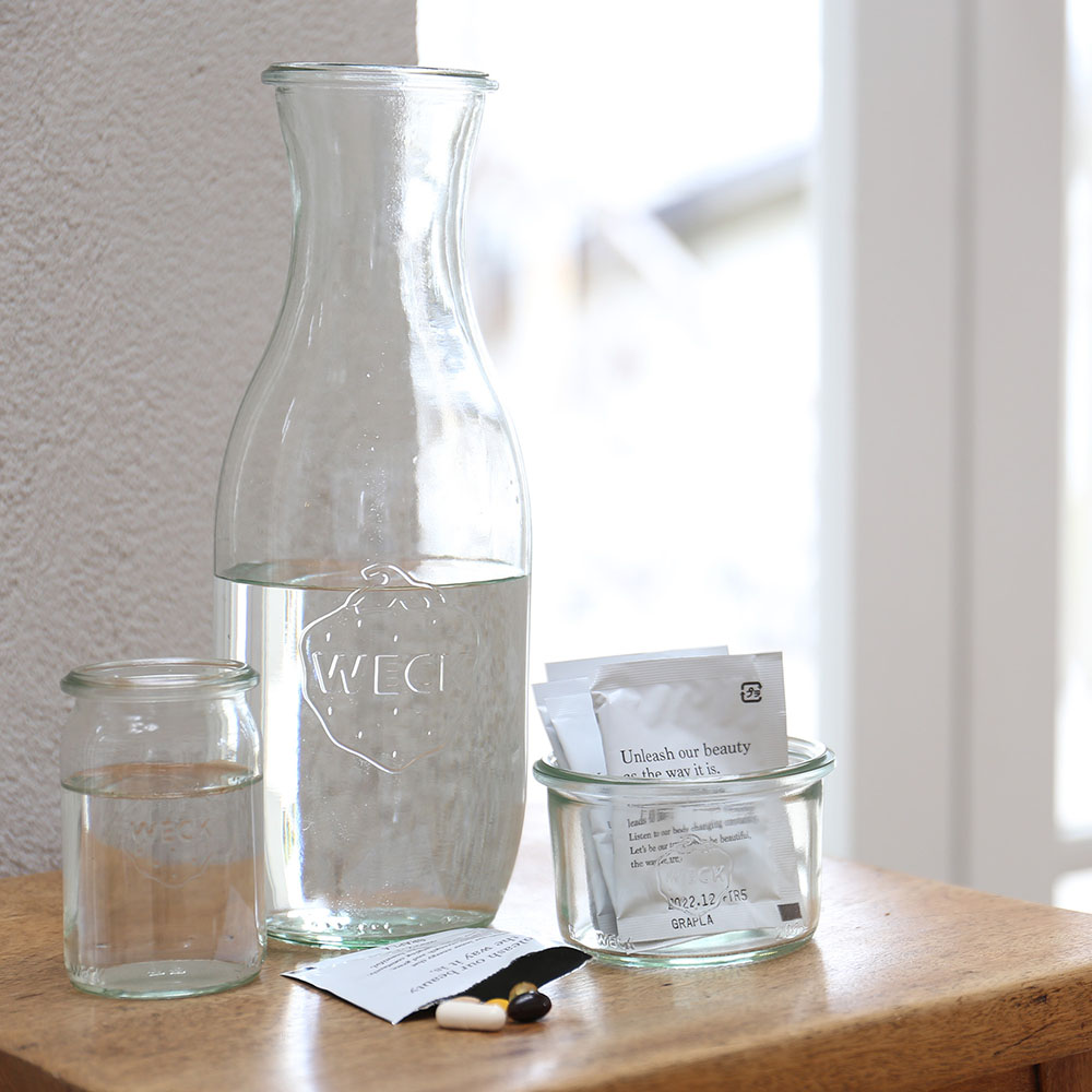 毎日使う水や麦茶を入れるのには、洗いやすいガラスの容器がオススメです。また、気になる色やにおい移りがしにくいのも使い勝手が良いところです。●WECKってどんなもの?