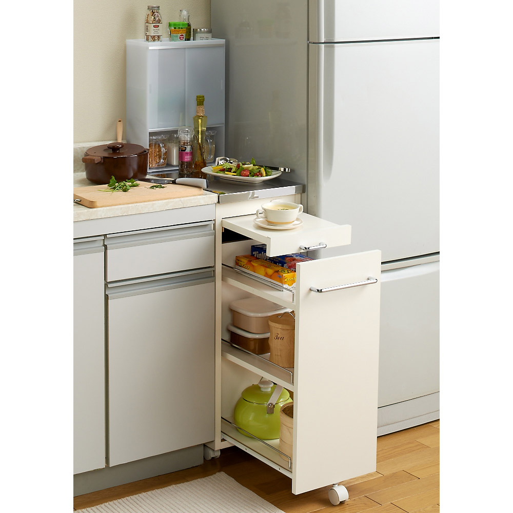 熱・水に強いステンレス天板でシンクまわりが広がる隙間家具