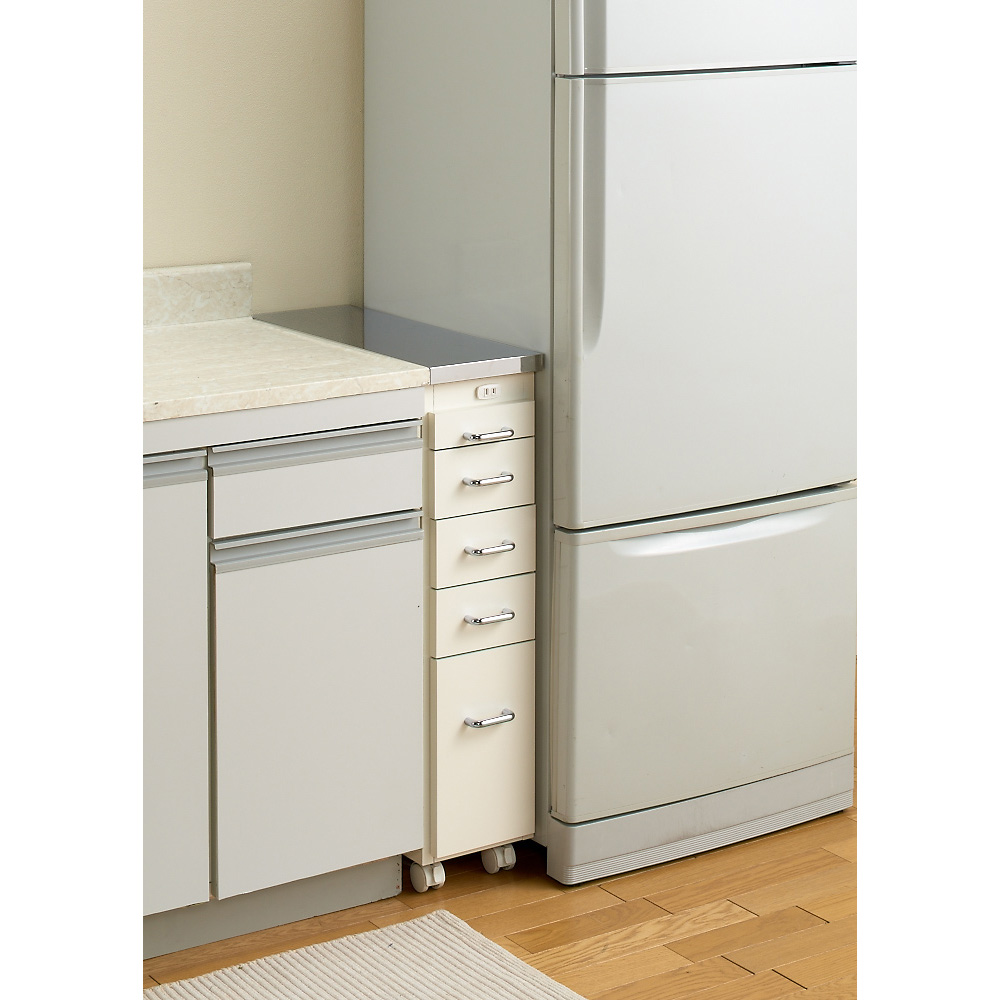 熱・水に強いステンレス天板でシンクまわりが広がる隙間家具