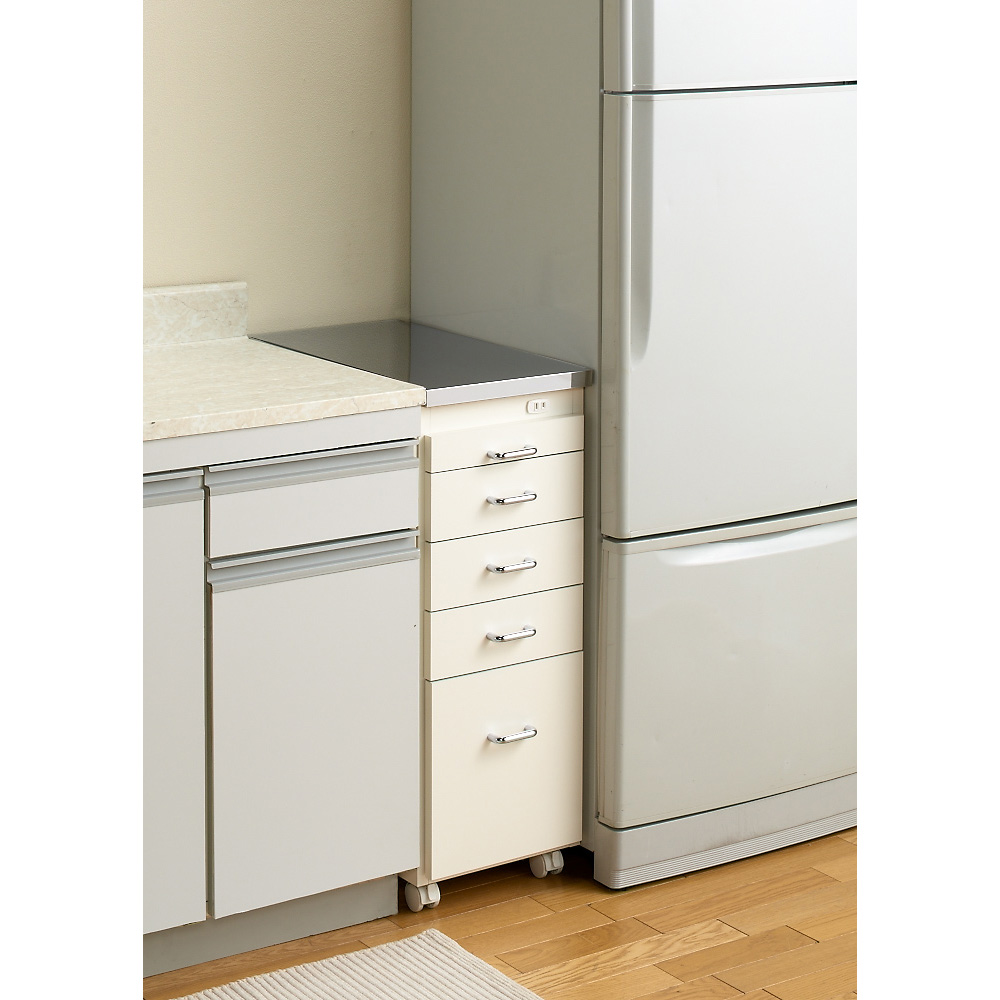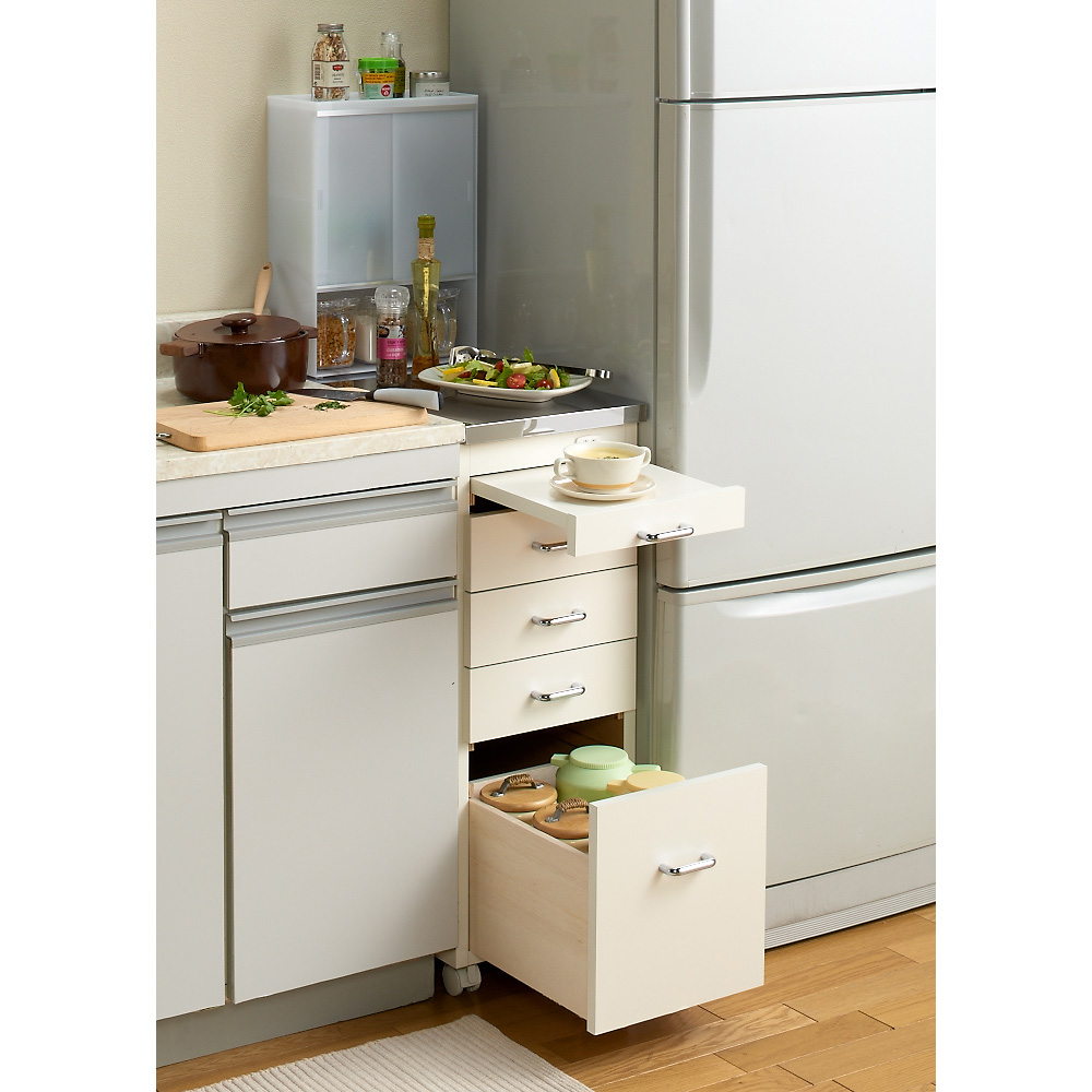 熱・水に強いステンレス天板でシンクまわりが広がる隙間家具