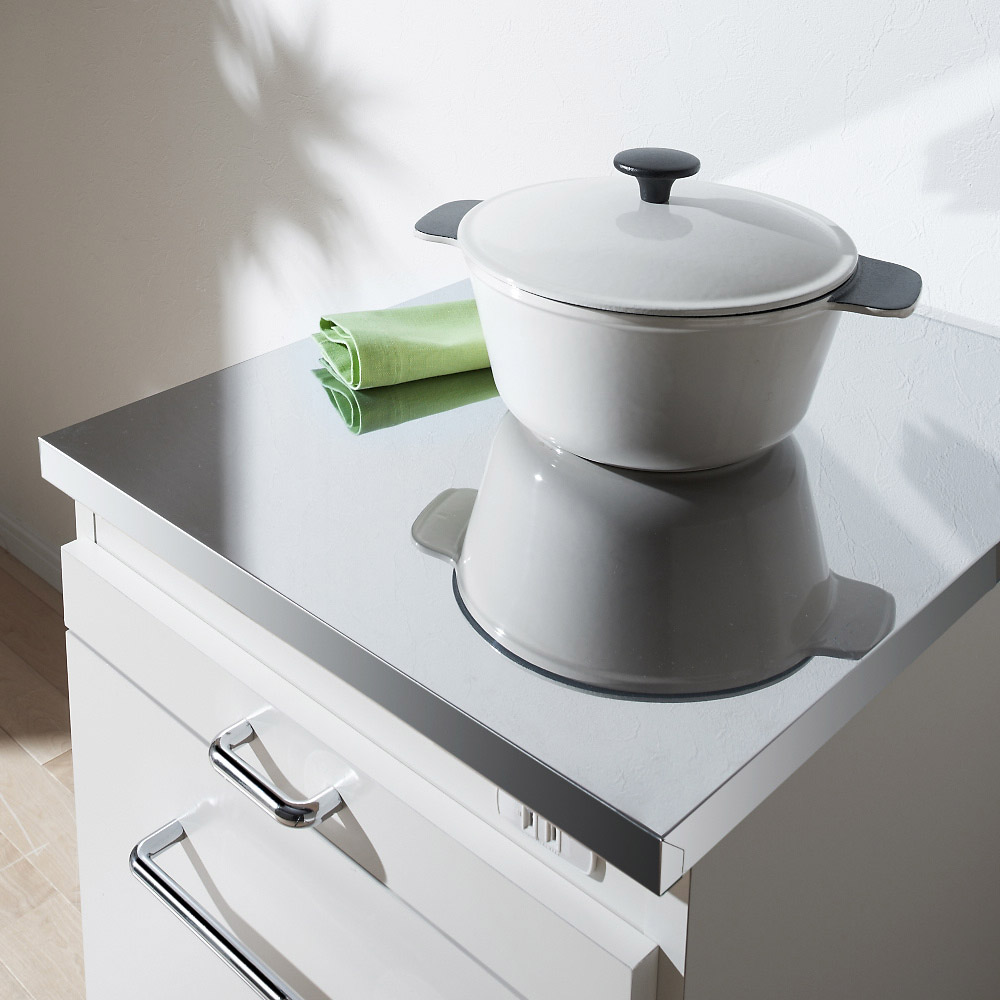 ◆お手入れの簡単さもステンレス天板の魅力です。サッとひとふきでパッとキレイに。