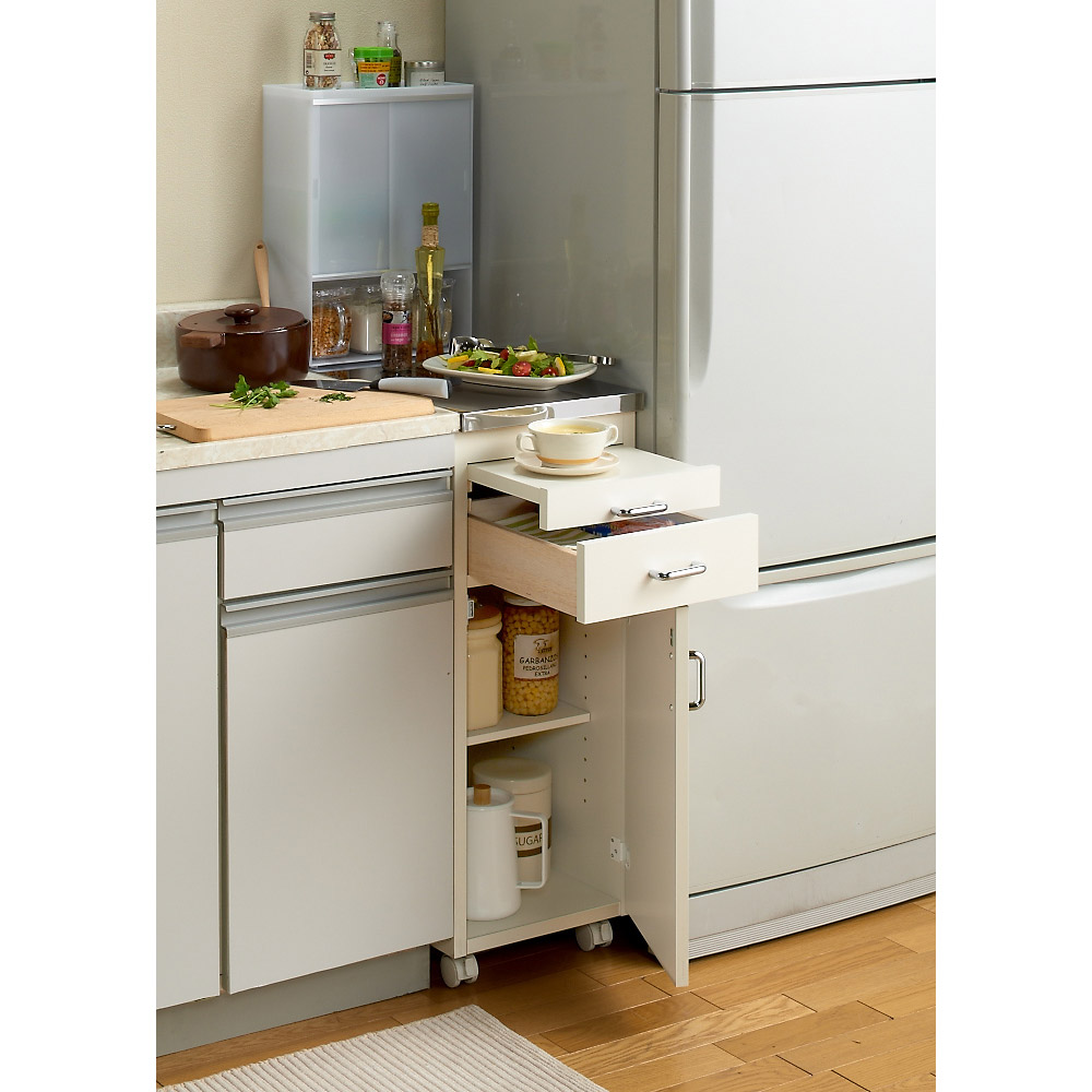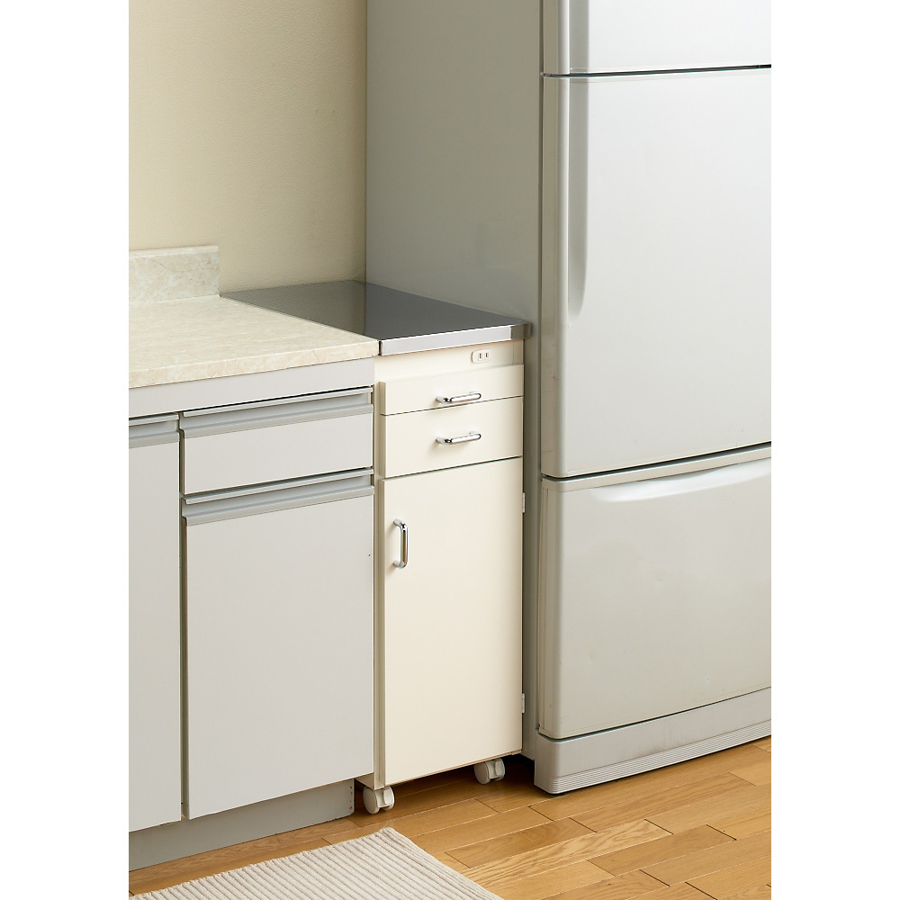 熱・水に強いステンレス天板でシンクまわりが広がる隙間家具