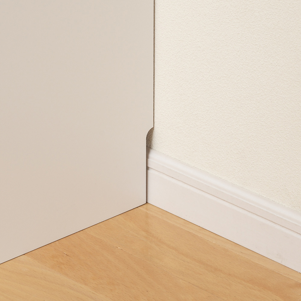 幅木を避けて壁にピッタリ設置できるように、高さ8cm×奥行1cmの大きさで後方をカットしています。