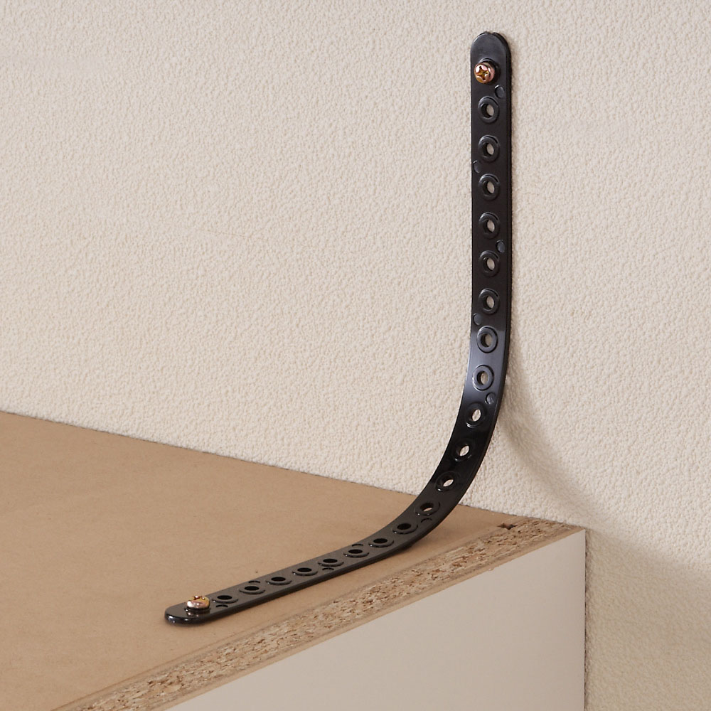 転倒防止ベルトを付属。本体と壁に直接ネジを打ち込み、ベルトで固定します。