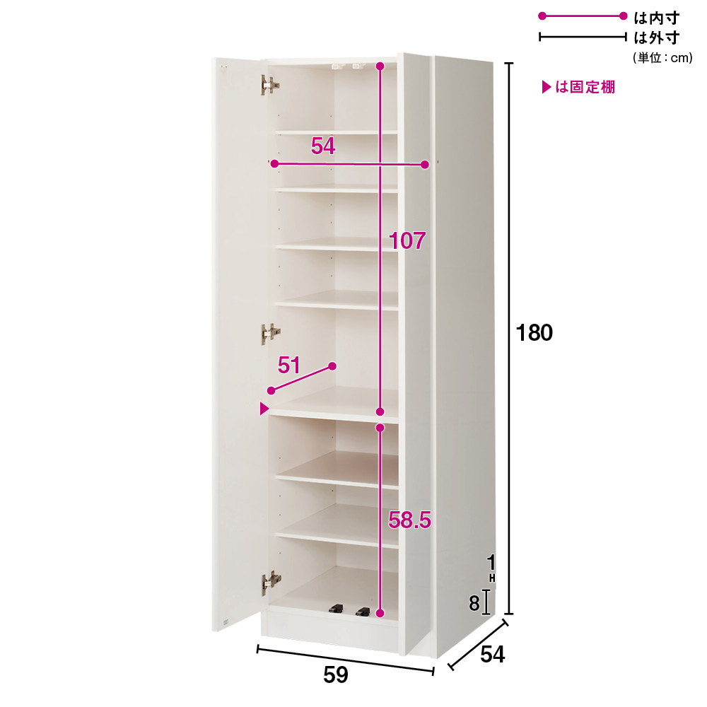 ■【収納部(内寸)】収納部内寸…幅54cm奥行51cm高さ(固定棚挟んで上)107cm(下)58.5cm