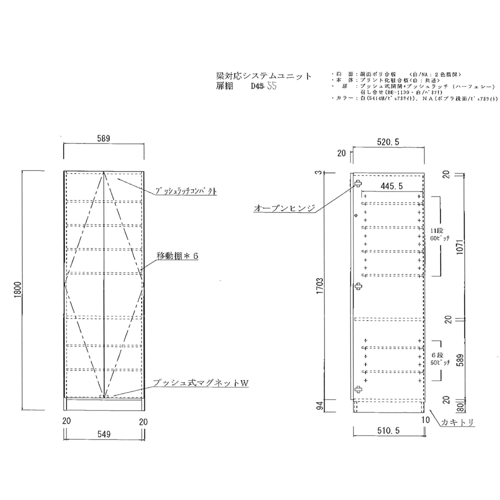 ■【扉仕様】観音開き・マグネットプッシュ+ラッチ併用式