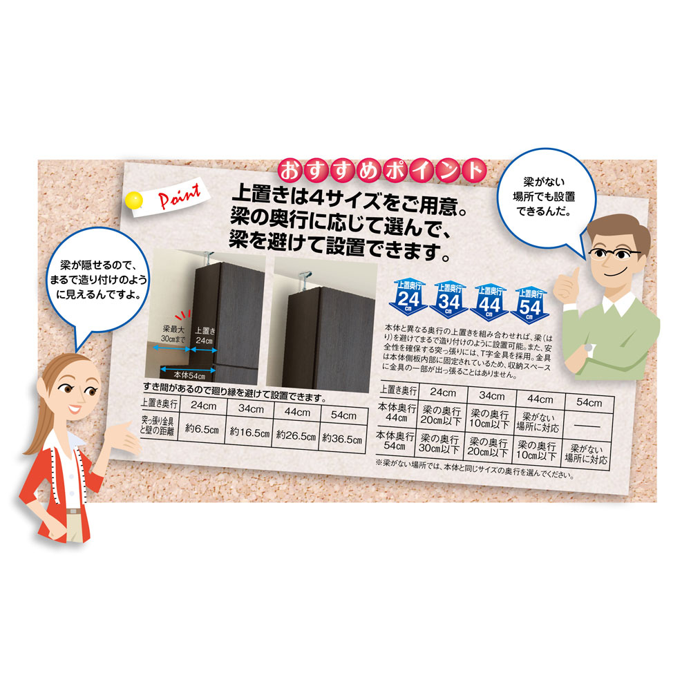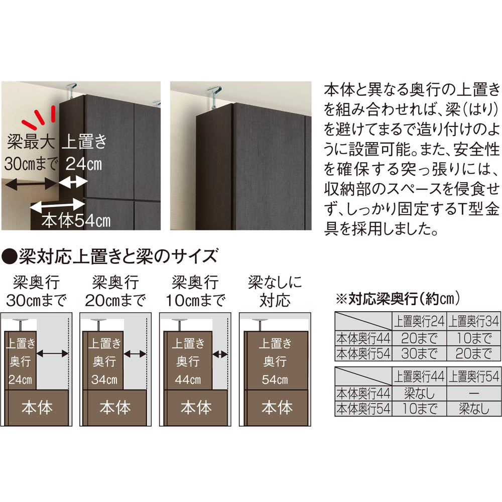 ※対応している上置きの種類は、奥行き24・34・44・54cmタイプです。