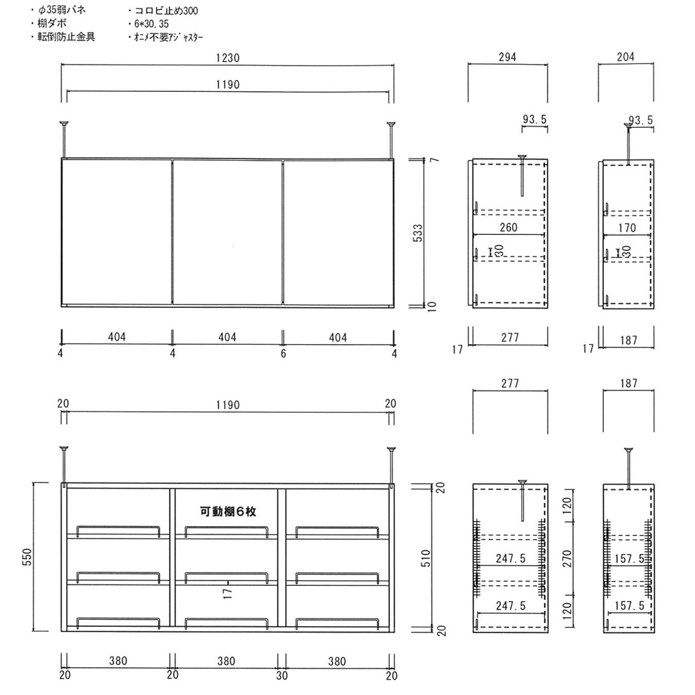 ■【可動棚板枚数】6枚付き(1cm間隔調節、28段×3箇所)