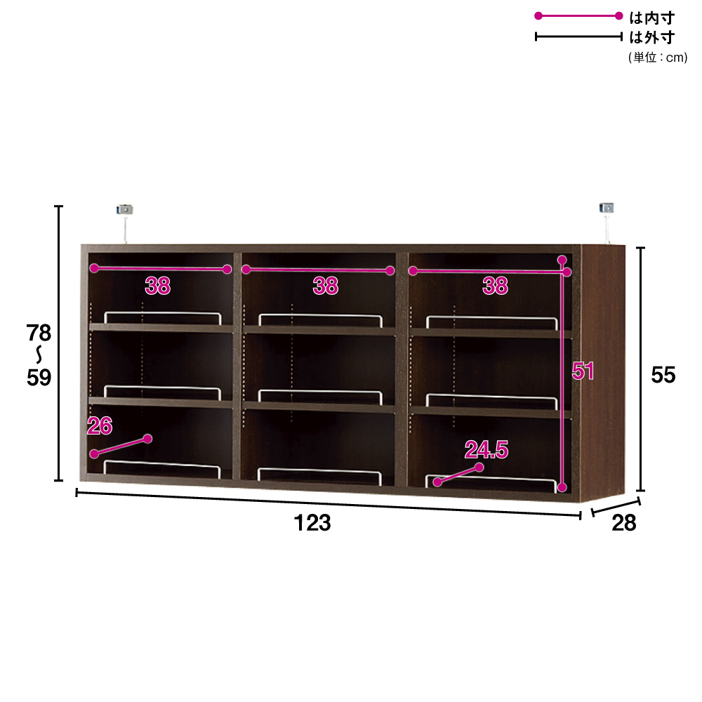 (ア)ダークブラウン ≪組合せ例≫ ※お届けは突っ張り上置きオープンタイプ(幅123cm奥行28cm)です。