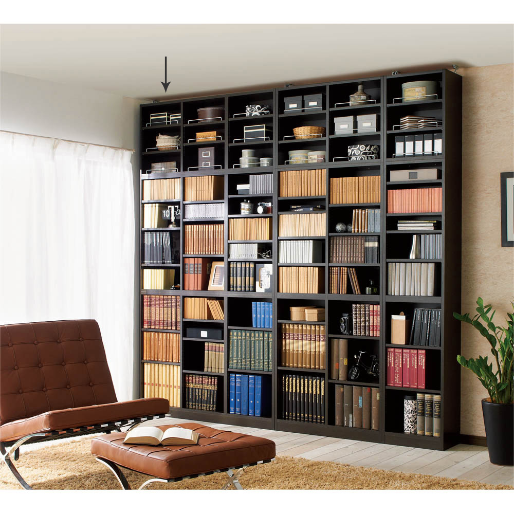 5.上置きは、天井までの空間を有効活用。安心感のあるツッパリ式で壁面収納書棚として。