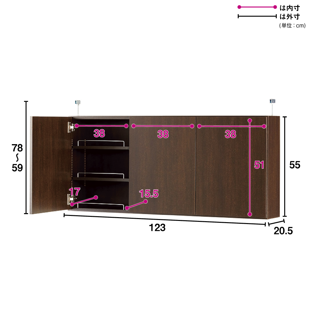 (ア)ダークブラウン ≪組合せ例≫ ※お届けは突っ張り上置き扉付きタイプ(幅123cm奥行20.5cm)です。