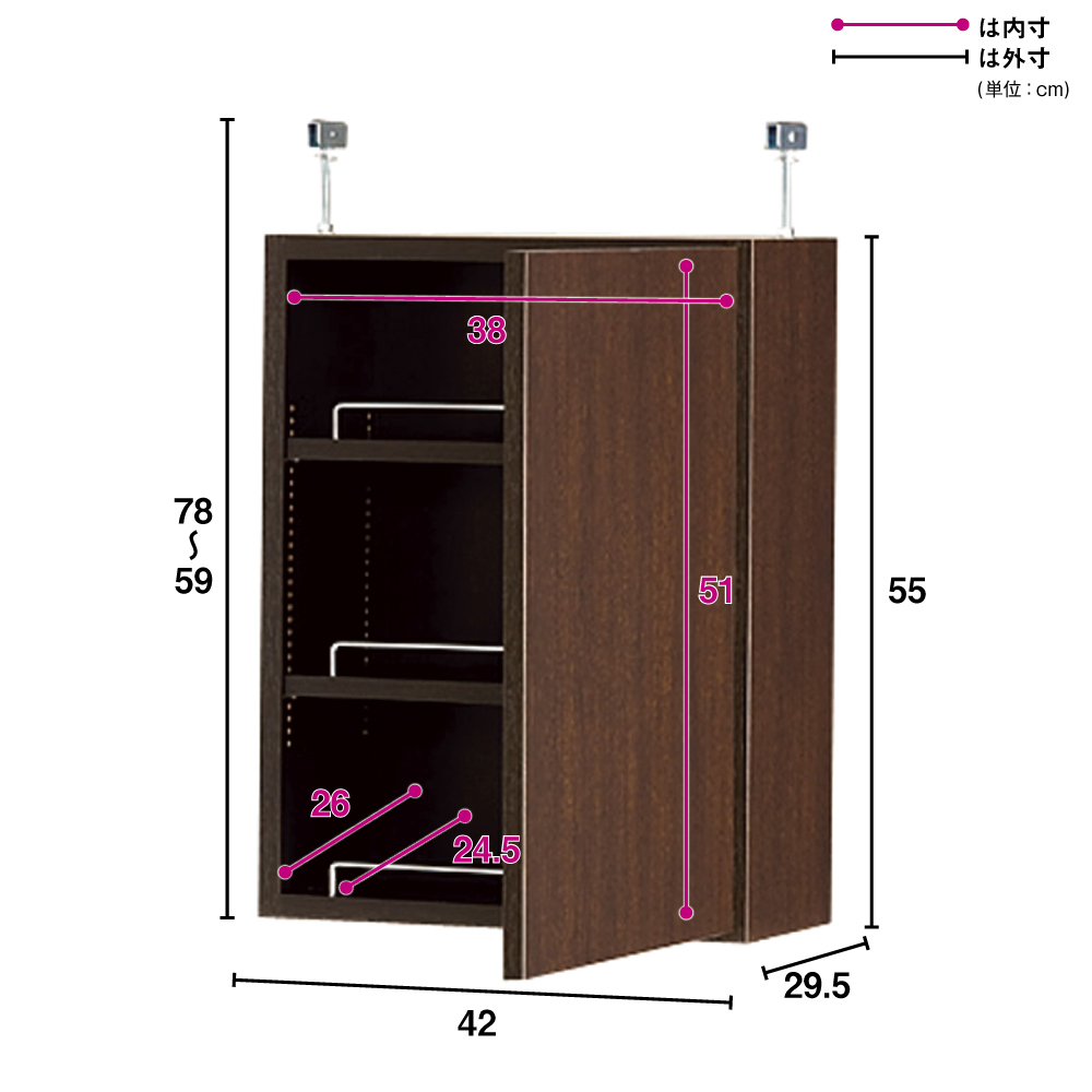 ■【収納部(内寸)】幅38奥行26(転び止め取外し時)/24.5(転び止め設置時)高さ51cm