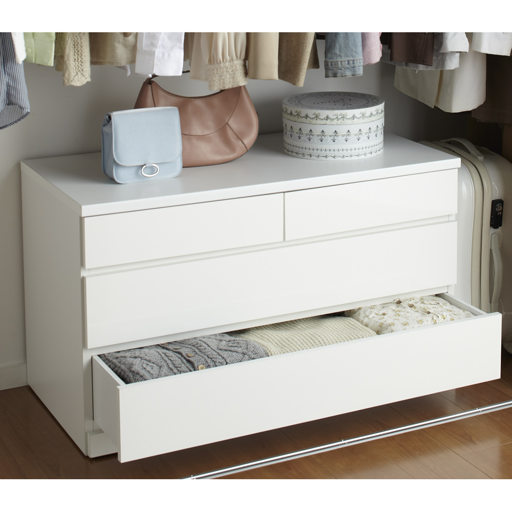奥行たっぷり50cmのチェストタンスです。ホワイトは高級感がある光沢仕上げで、汚れてもお手入れが簡単。
