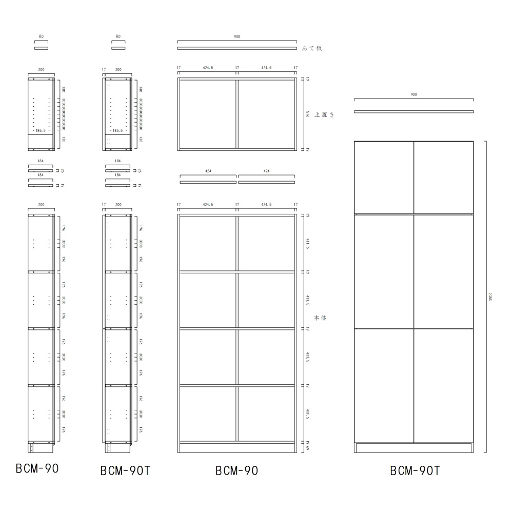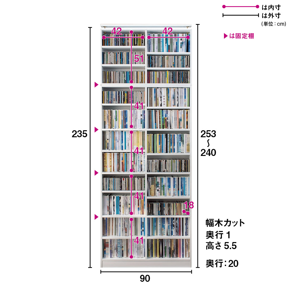 • (幅90cm奥行20cm) ※文庫本約550冊収納