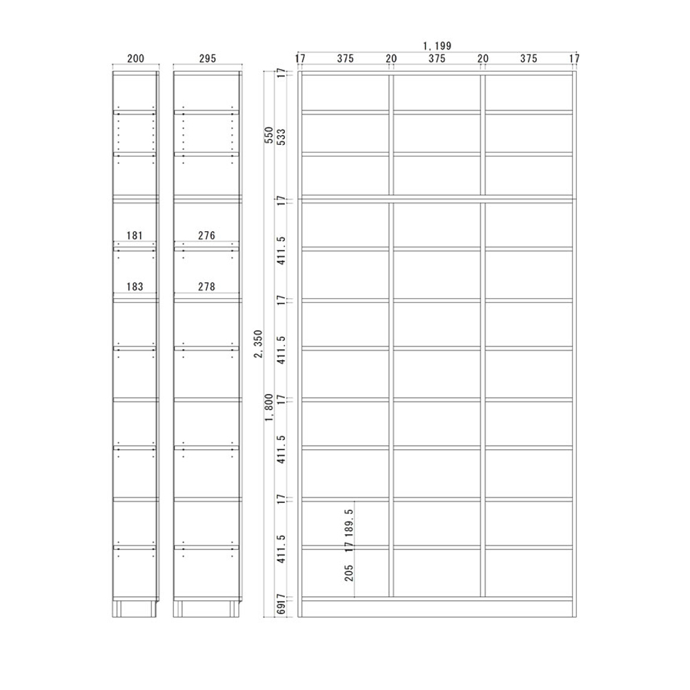 ■可動棚板18枚付き(棚板は3cm間隔で高さ調整可能)