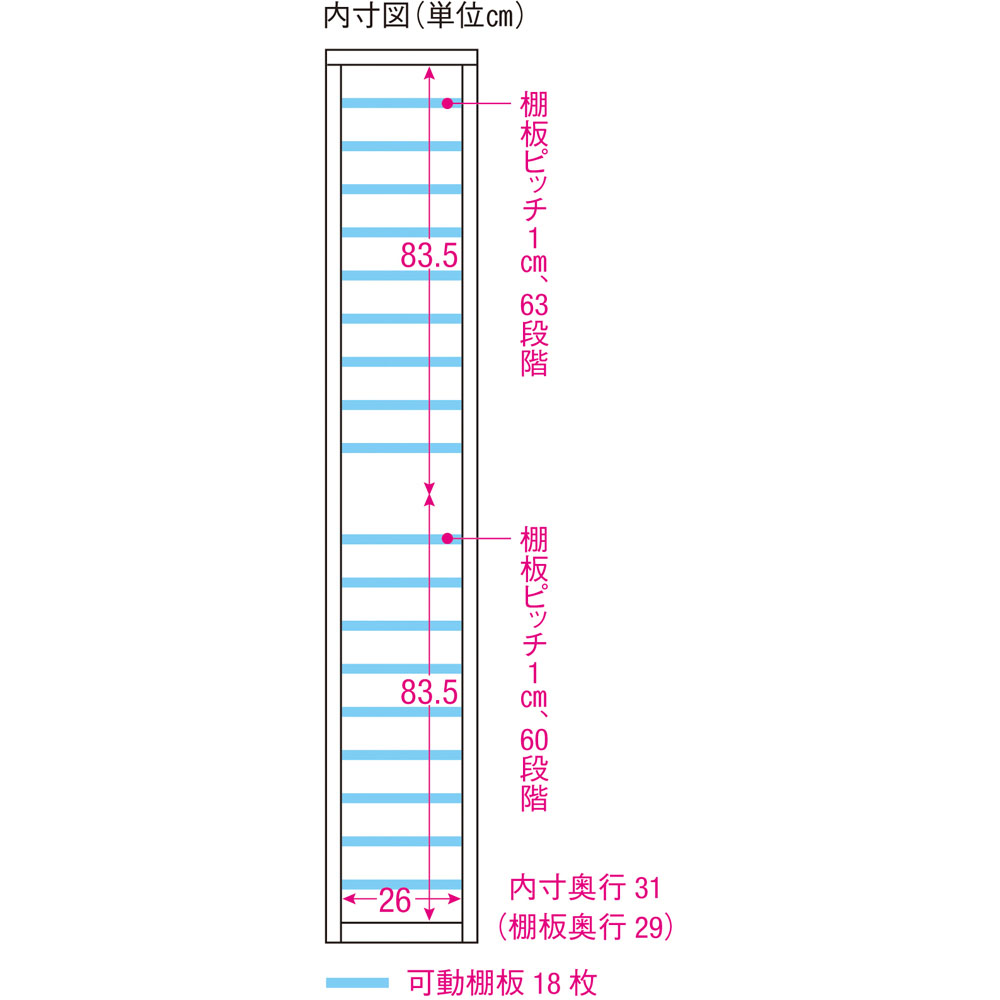 ■可動棚板:18枚付き(1cm間隔調節で上63段、下60段、中間に磁石、蝶番あり。)