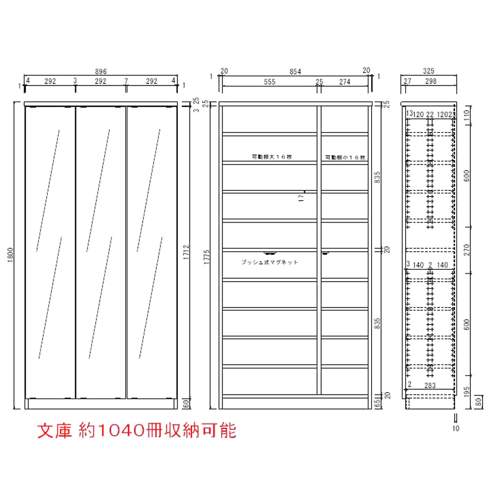 ■【収納目安】文庫本約870冊