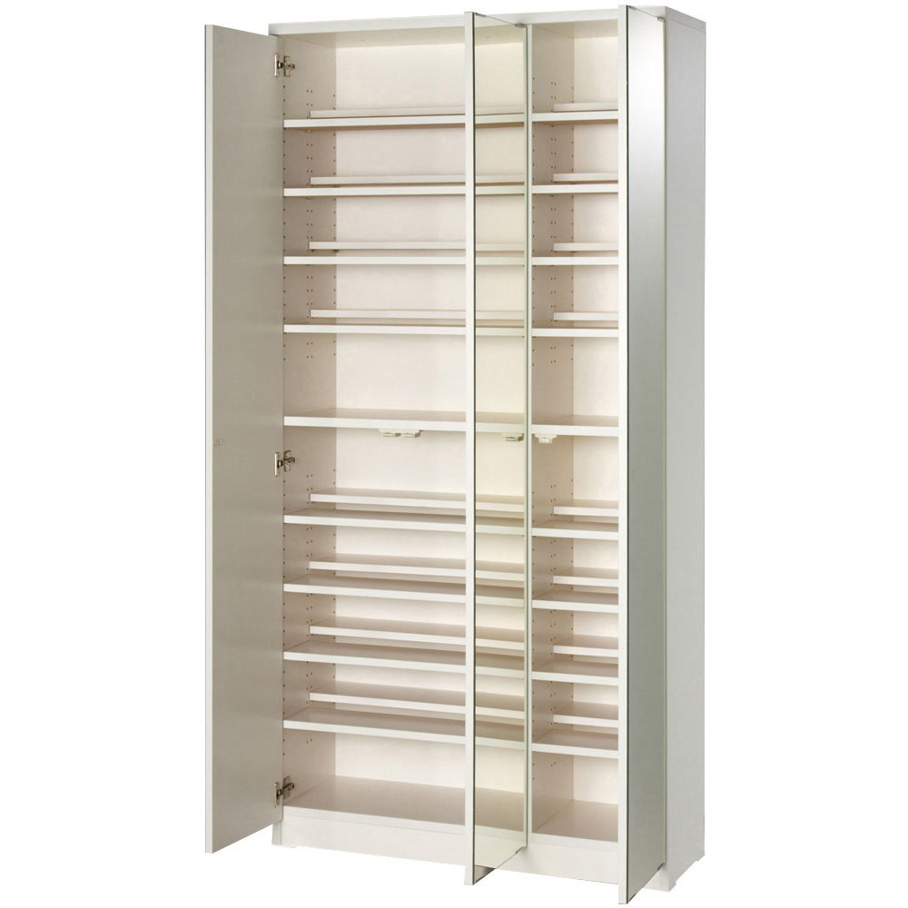 (ア)ホワイト≪組合せ例≫ ※お届けは開き戸タイプミラー扉幅90cm高さ180cmです。 写真は、ミラー扉高さ180cm(幅75cm2台、90cm)とミラー扉上置き(幅75cm2台、90cm)の組み合わせ例です。