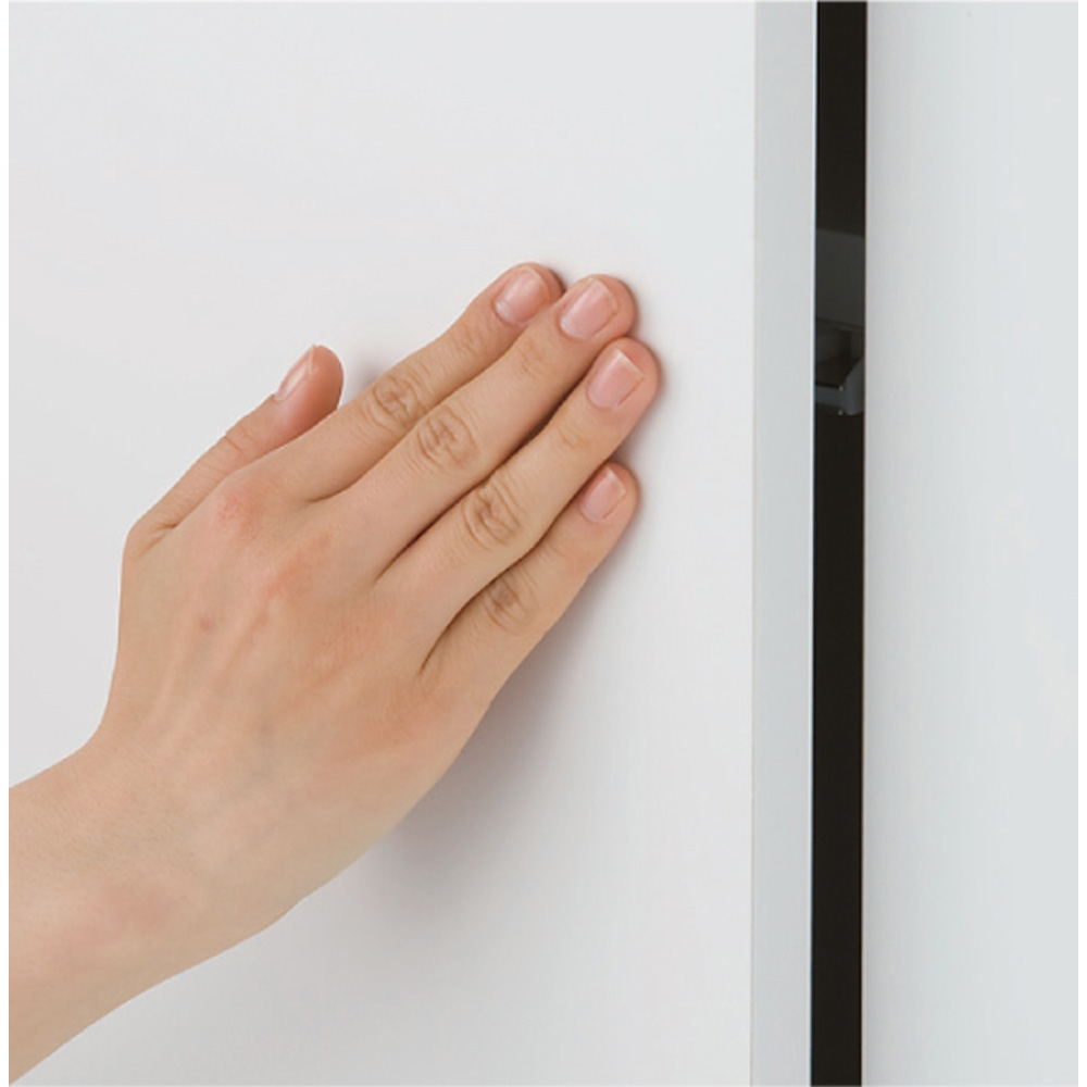 開き戸は取っ手のないすっきりデザインのプッシュ式。
