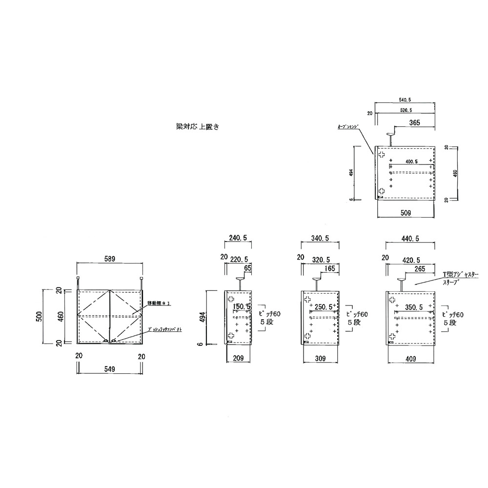 上置きの奥行は4種類。安心のプッシュラッチ付き。