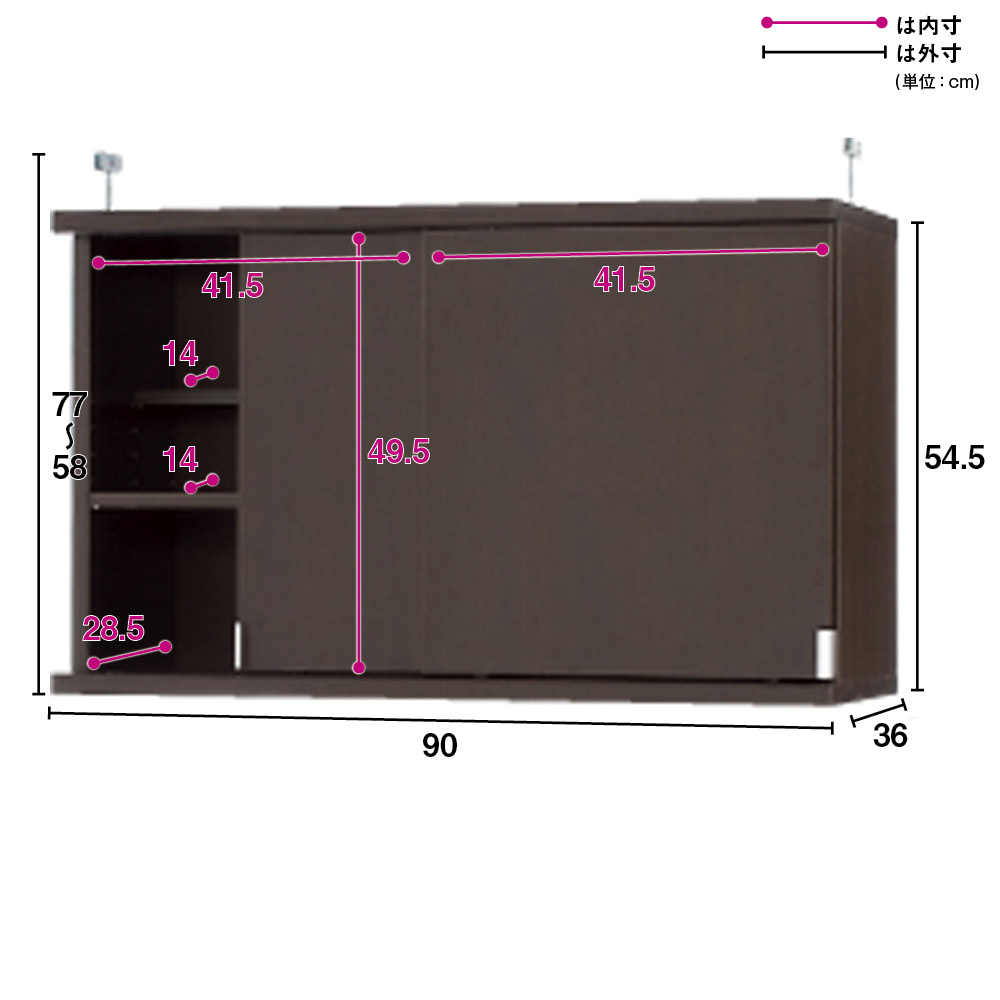 • (イ)ダークブラウン ≪組合せ例≫ ※お届けは板扉上置き(幅90cm)です。