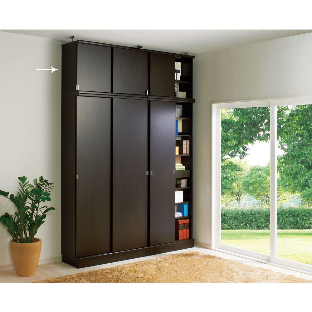 ◆シリーズの突っ張り式上置きと組み合わせれば、床から天井まで壁面一面をお使いいただけます。