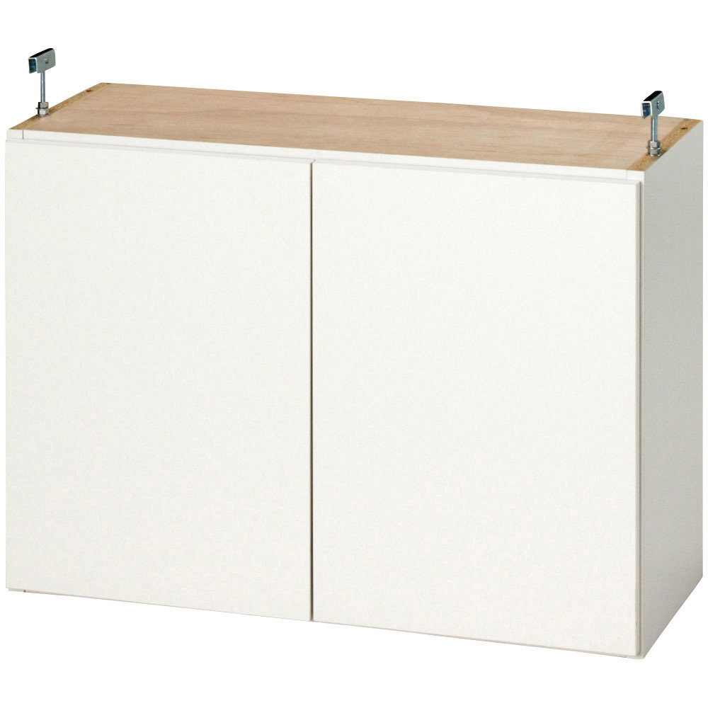 効率収納できる段違い棚シェルフ [突っ張り上置き 板扉タイプ 引き戸 幅90cm] 上置き高さ54.5cm 突っ張り収納 ラック 本棚 シェルフ 627942