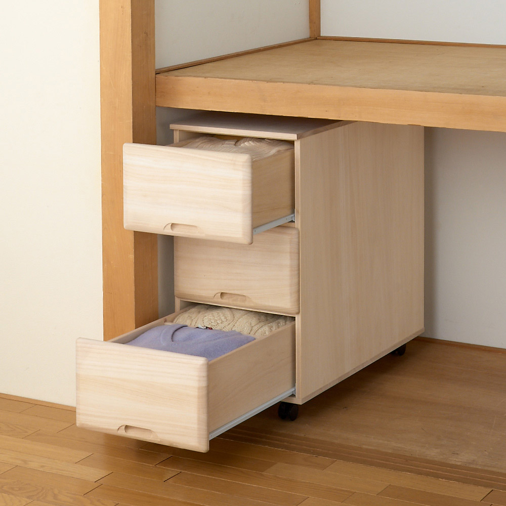 【衣類に優しい押し入れ収納】総桐スライドレール 押し入れタンス スリム 3段・高さ75cm 押入れ クローゼット収納 衣類収納 633119