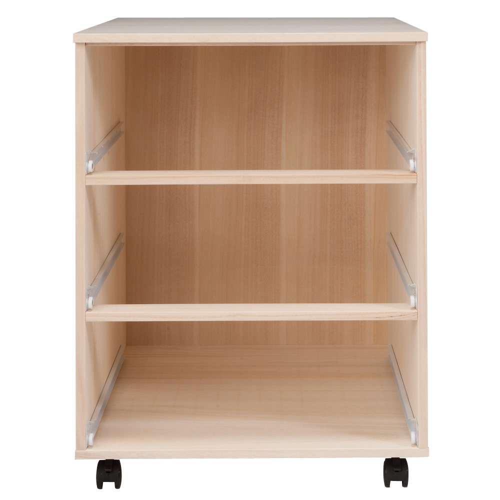 脇のすき間を活かしてアイロン台や薄型ケースも置けます。 ※写真は3段ミドル・高さ69です。