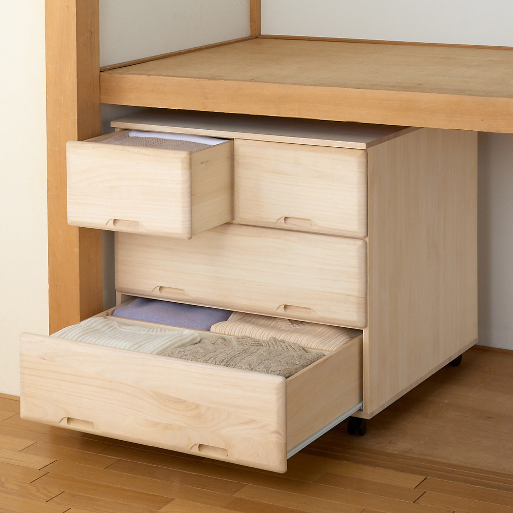 ●引き出しの間には補強板または地板を入れているので、ホコリが入りにくい構造です
