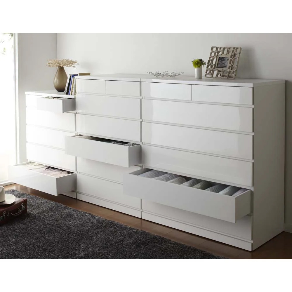 奥行たっぷり50cmのチェストタンスです。ホワイトは高級感がある光沢仕上げで、汚れてもお手入れが簡単。