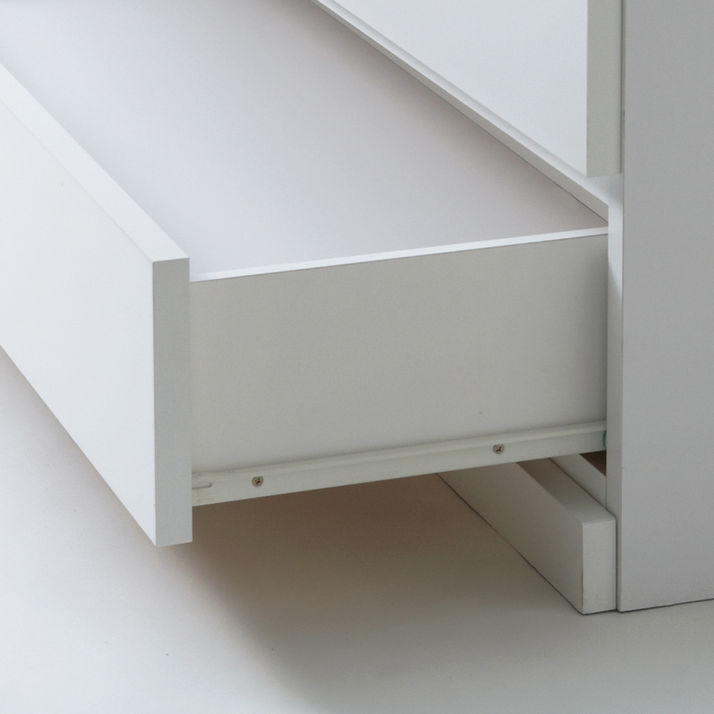 引き出しは全段ストッパー付きスライドレール仕様で、たくさん衣類を収納しても開閉がスムーズにできます。
