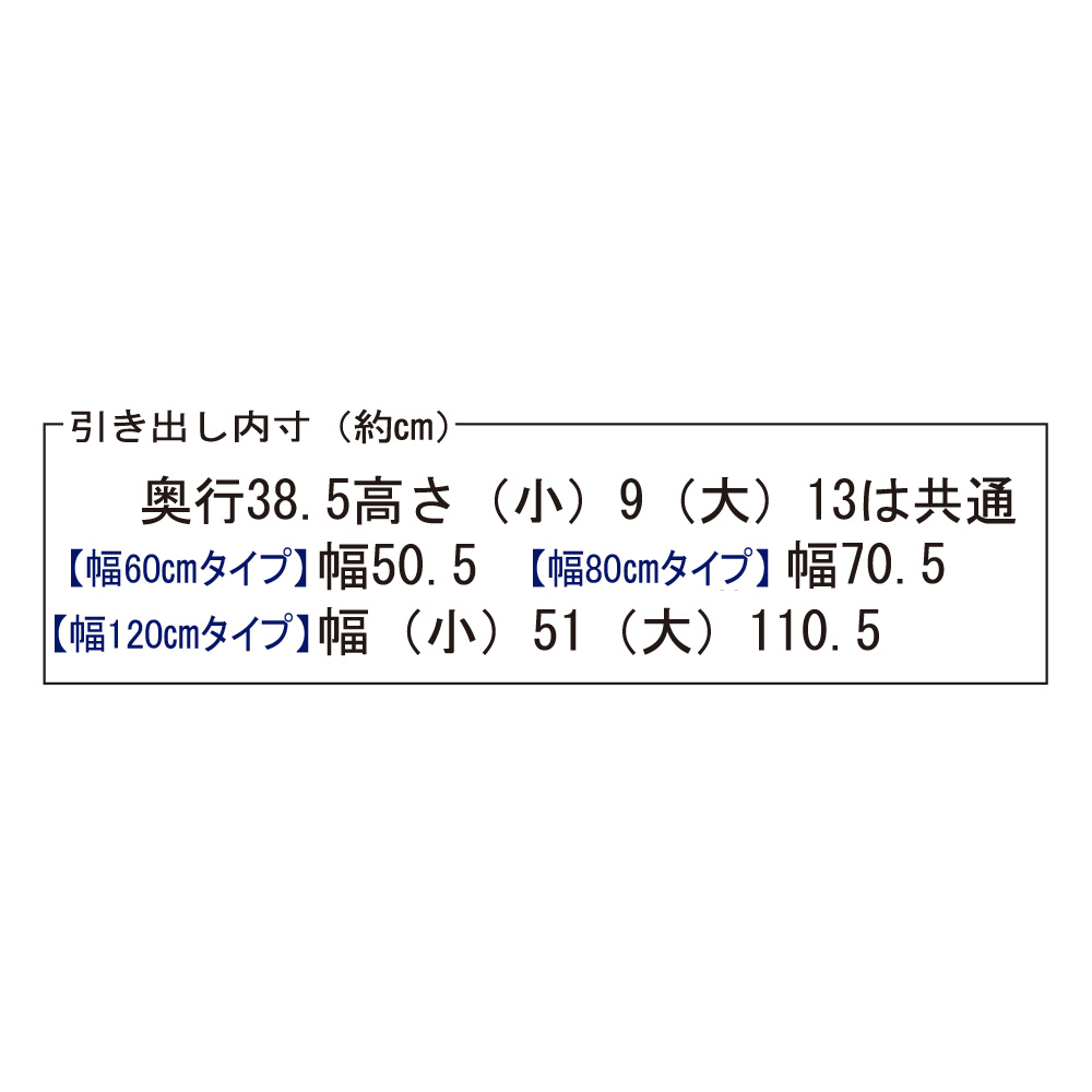 前面は美しく圧迫感のない光沢仕上げ。 ※写真は(左)幅120cm・4段タイプ、(中央)幅80cm・6段タイプ、(右)幅60cm・6段タイプです。
