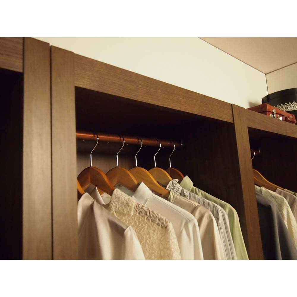 ■フレームに厚みを持たせることでヨーロッパや輸入住宅で見られるようなクローゼット収納が叶うシリーズ。■表面材には住宅建材ににも使用されるウォルナット天然木の柄をリアルに再現した高級な面材シートを採用しました。