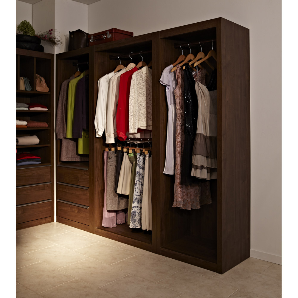 高級感と重厚感を醸し出すウォールナット無垢材調のヨーロピアンな衣類収納ユニットシリーズ
