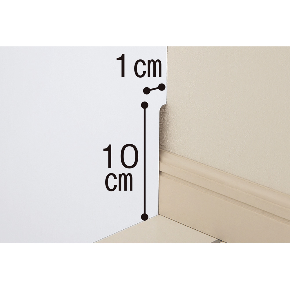 幅木よけカットを施しているので、壁面にぴったり設置可能です。