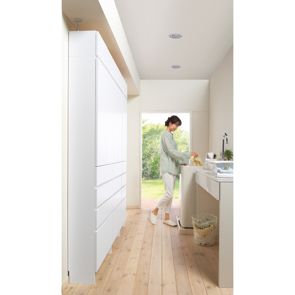 コーディネート例 狭い洗面所や脱衣所に置ける、見た目すっきりの薄型&天井突っ張りタイプ。