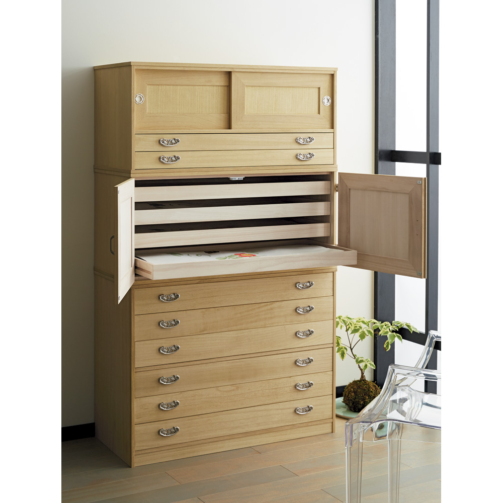 • たとう紙をスッキリ収納。引き出し1段あたり、たとう紙が3枚入ります。