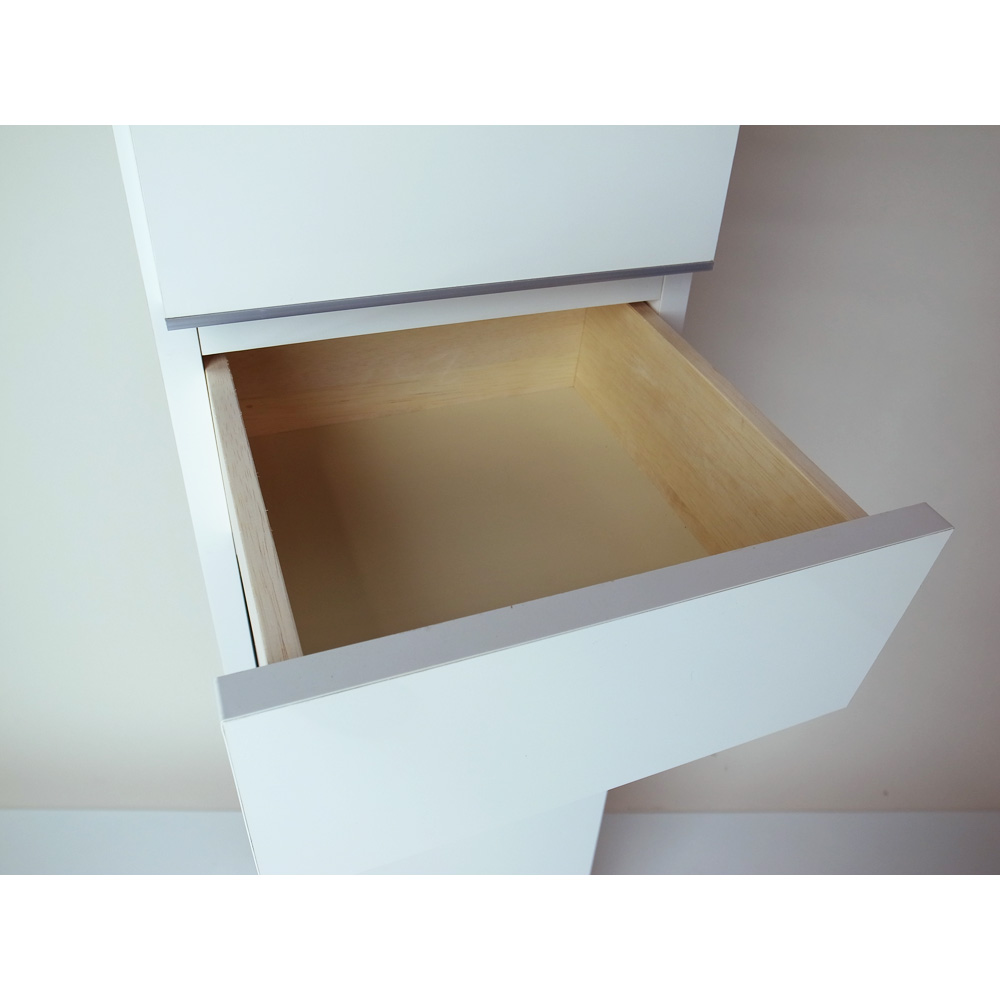 ●取っ手のないフラットなモダンなデザイン。ランドリー収納にも使えるチェストです。●幅木よけカットを施し、壁面にぴったりつけて設置ができます。