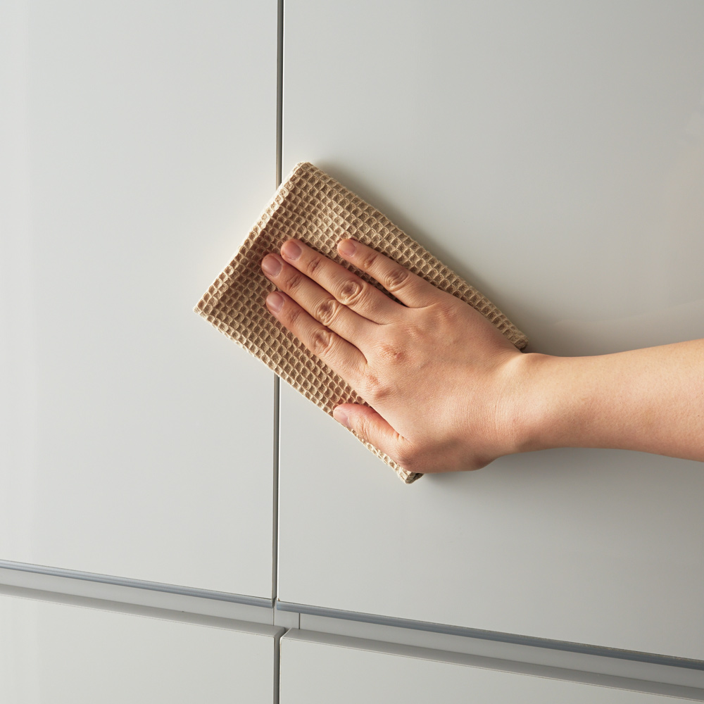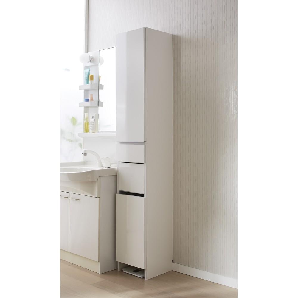 ●前面は湿気の多い場所での使用を考え、お手入れが簡単な光沢仕上げを施しました。●水ハネや汚れに強いので、洗面台の横などの水周りでも安心してご使用いただけます。