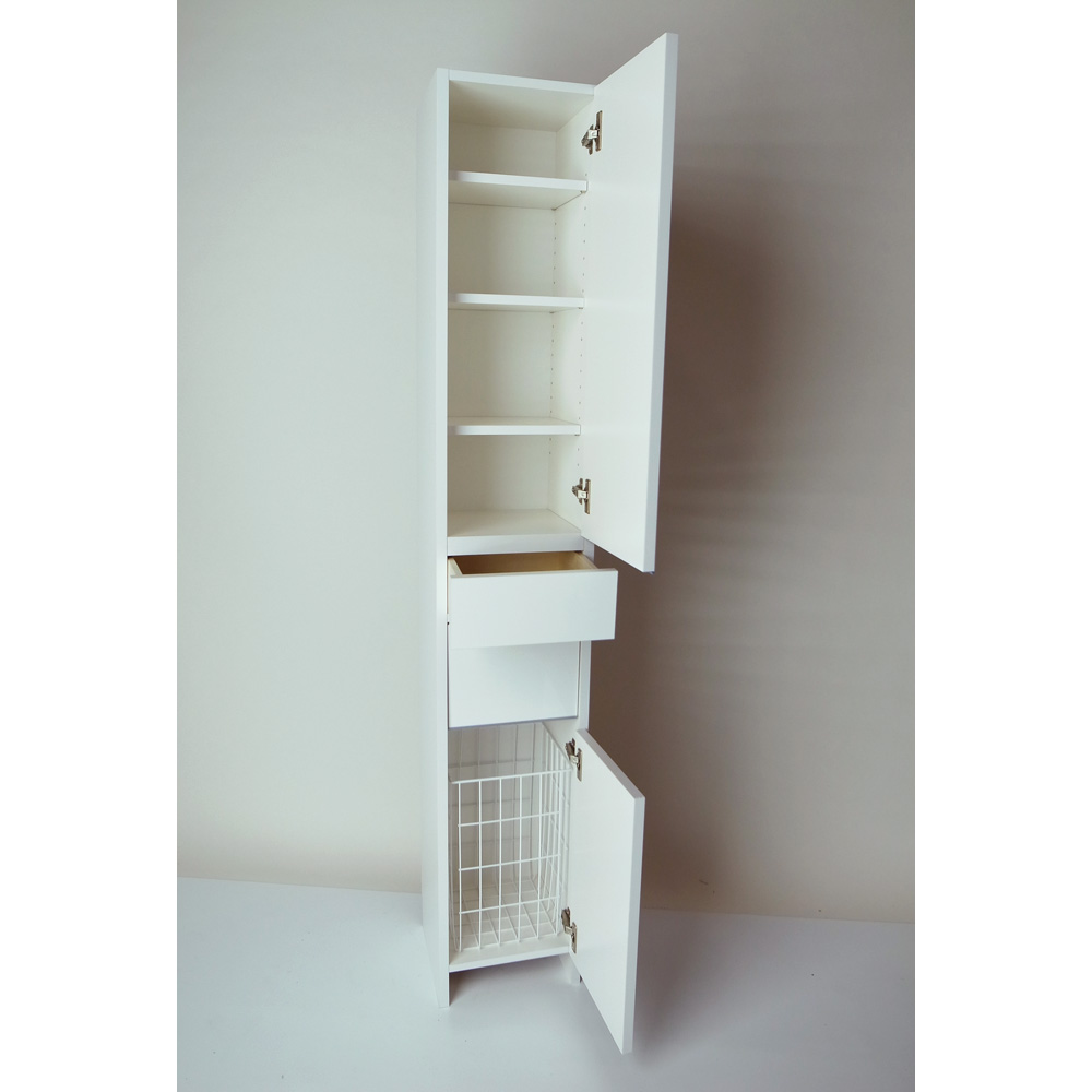 組立不要 洗濯カゴ付き2in1光沢サニタリー収納庫 ハイタイプ 幅31cm 洗面所収納 隙間収納 トイレ 洗面所 ランドリー収納 631126