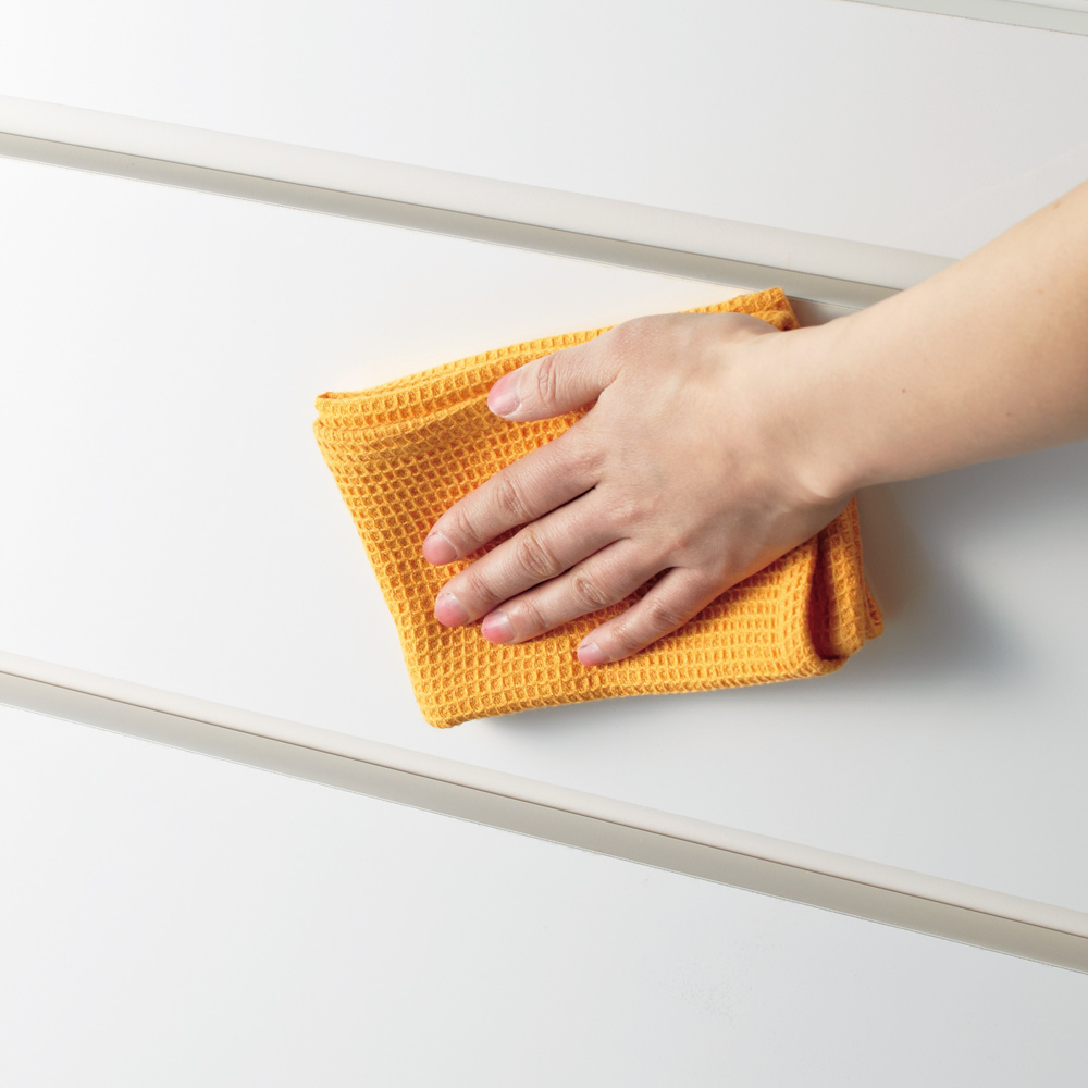 天板も光沢仕上げなので、水まわりでも安心してご使用いただけます。