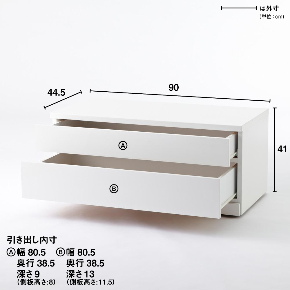 クローゼットチェスト(隠しキャスター付き) 幅90cm・2段 押入れ クローゼット収納 衣類収納 H95609