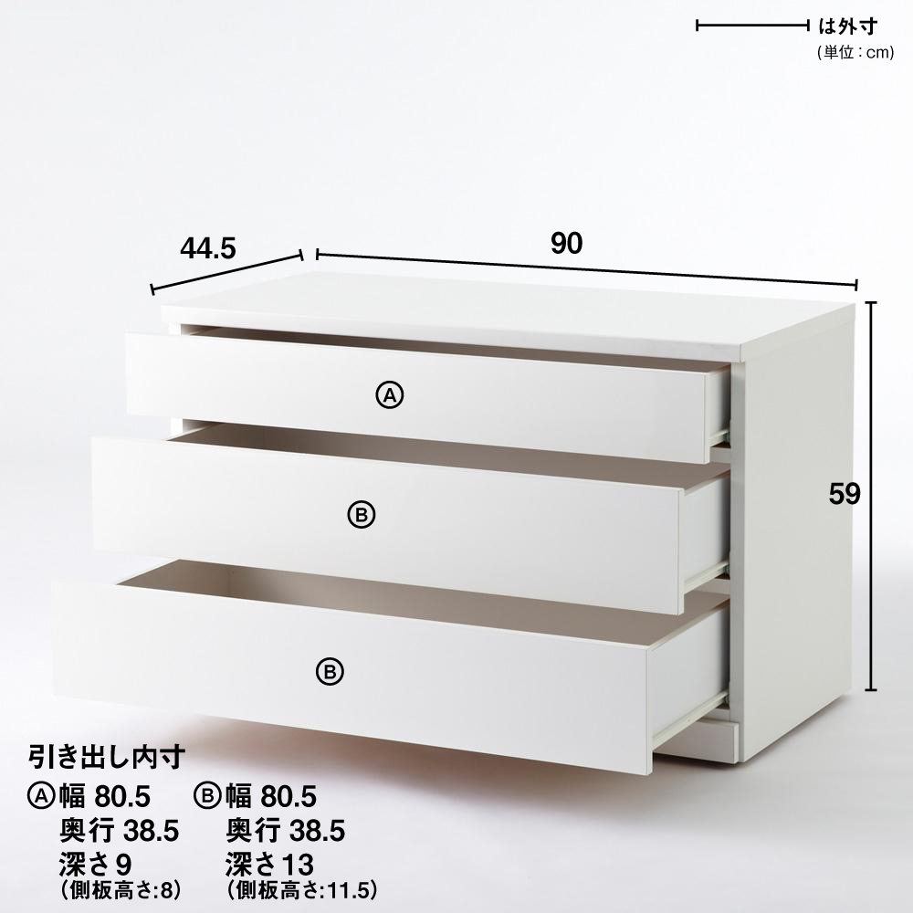 クローゼットチェスト(隠しキャスター付き) 幅90cm・3段 押入れ クローゼット収納 衣類収納 H95612
