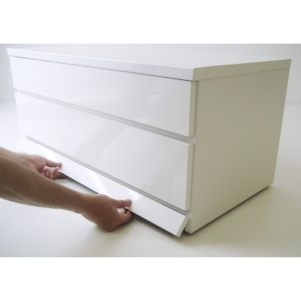 ホワイトの前面には光沢感がある化粧合板を使用しています。