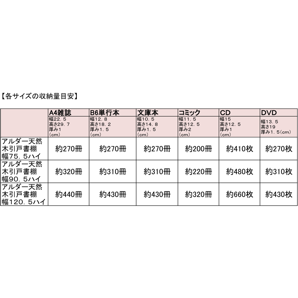 組立不要 アルダー引き戸頑丈本棚 幅75.5cm ハイタイプ ウッドラック 木製シェルフ 本棚 ラック シェルフ 545034