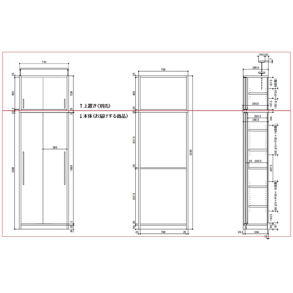 ハイタイプと上置きを組み合わせれば、造り付けのような壁面収納に。