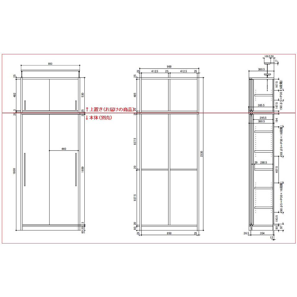 ※こちらの商品は、上置きです。本体ハイタイプと合わせてご検討ください。