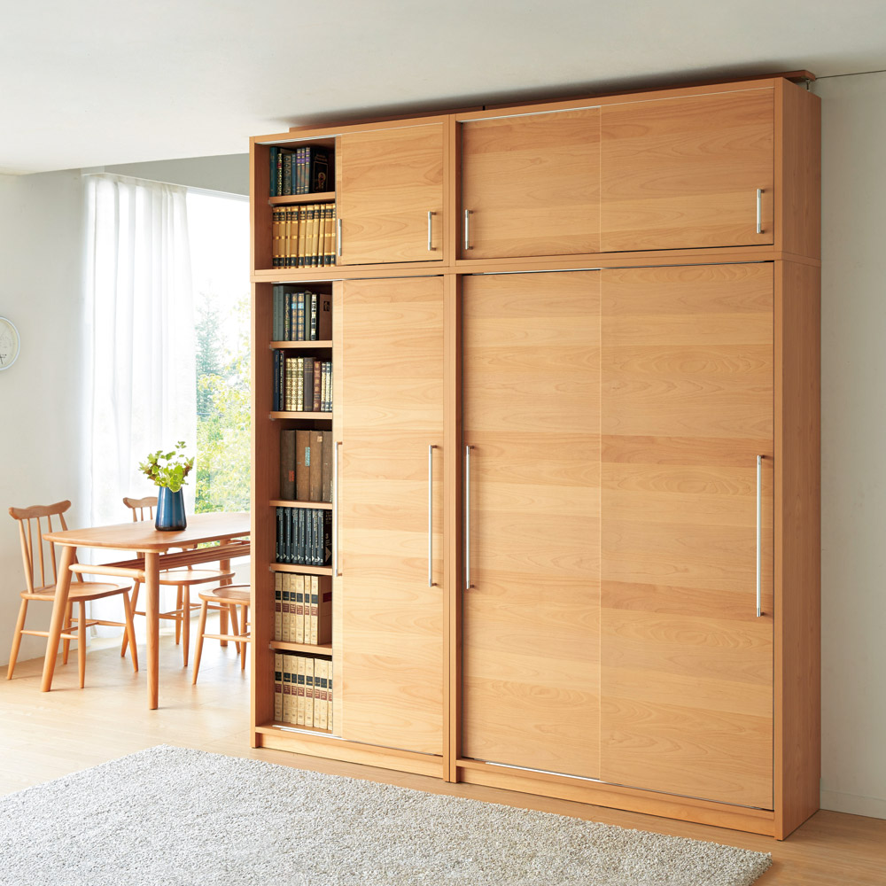 ハイタイプと上置きを組み合わせれば、造り付けのような壁面収納に。